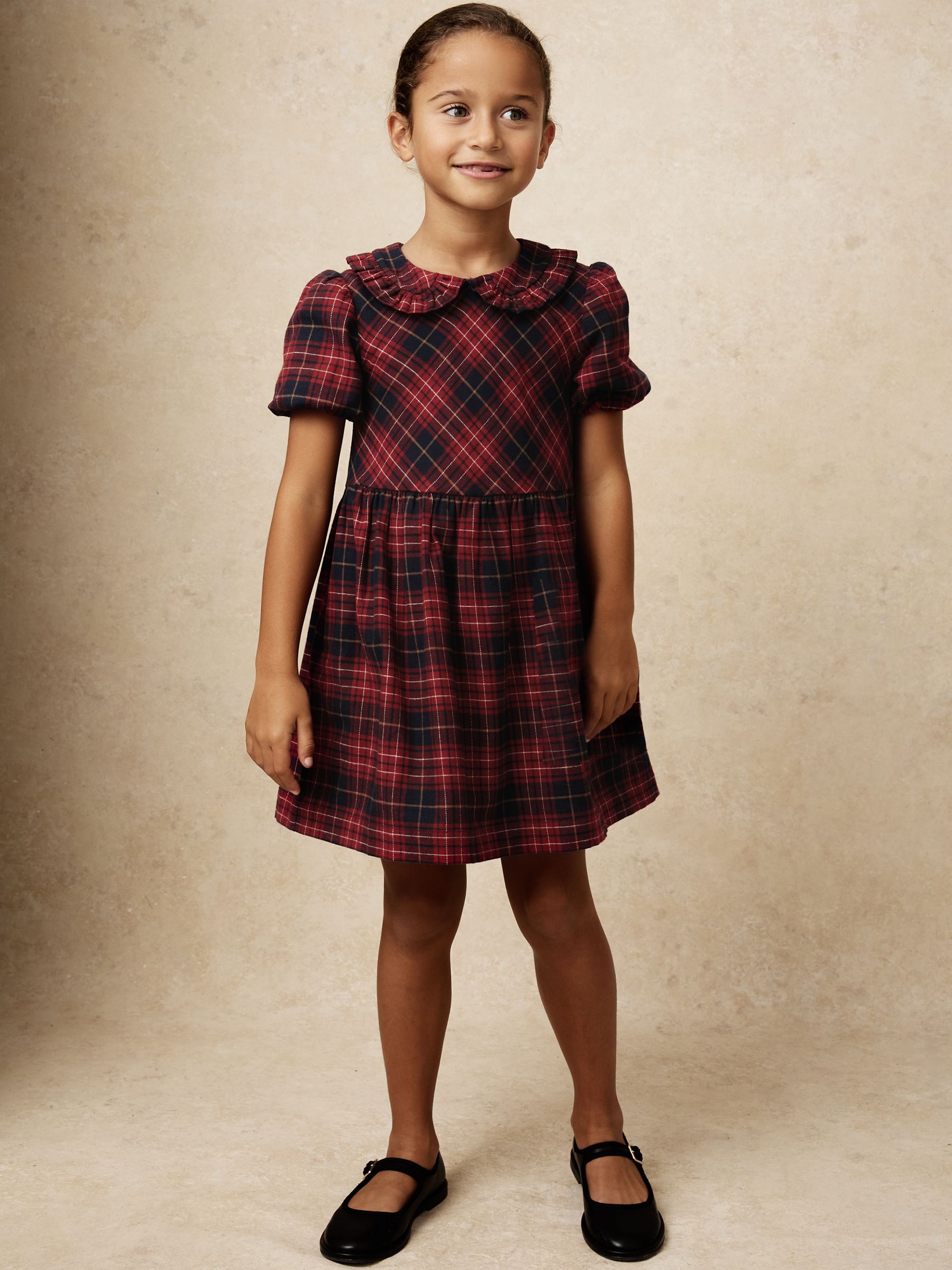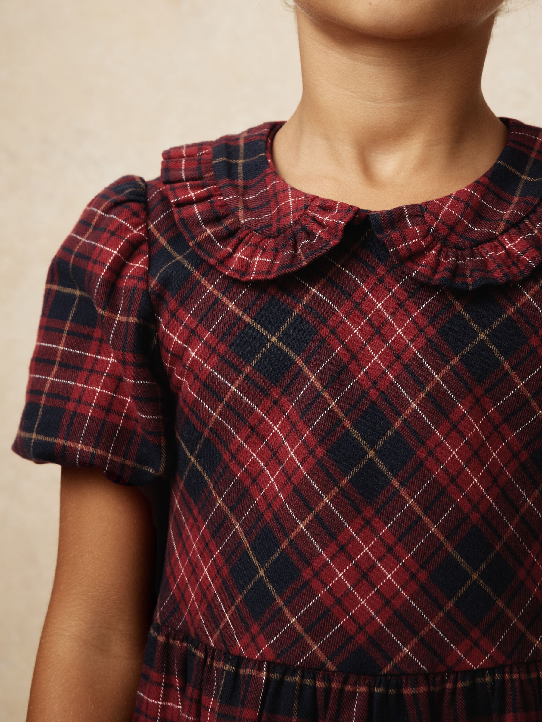 9-13 yrs Cotton Peter-Pan Collar Tartan Dress in Red