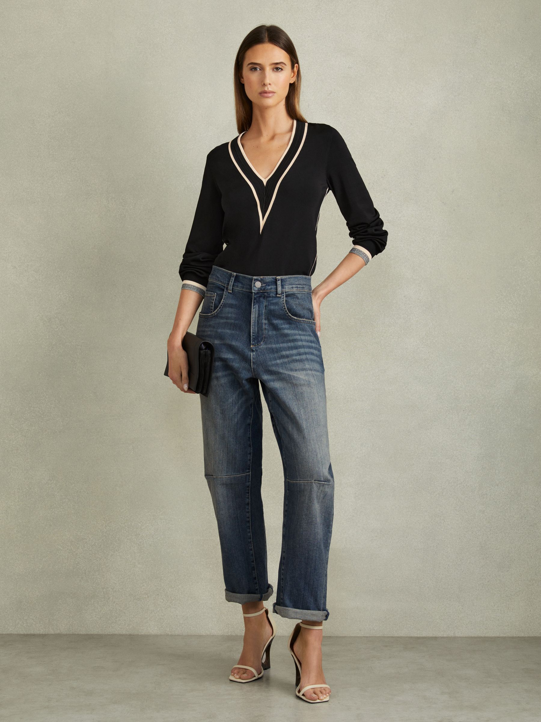 Faith Black/Cream Contrast Trim V-Neck Jumper