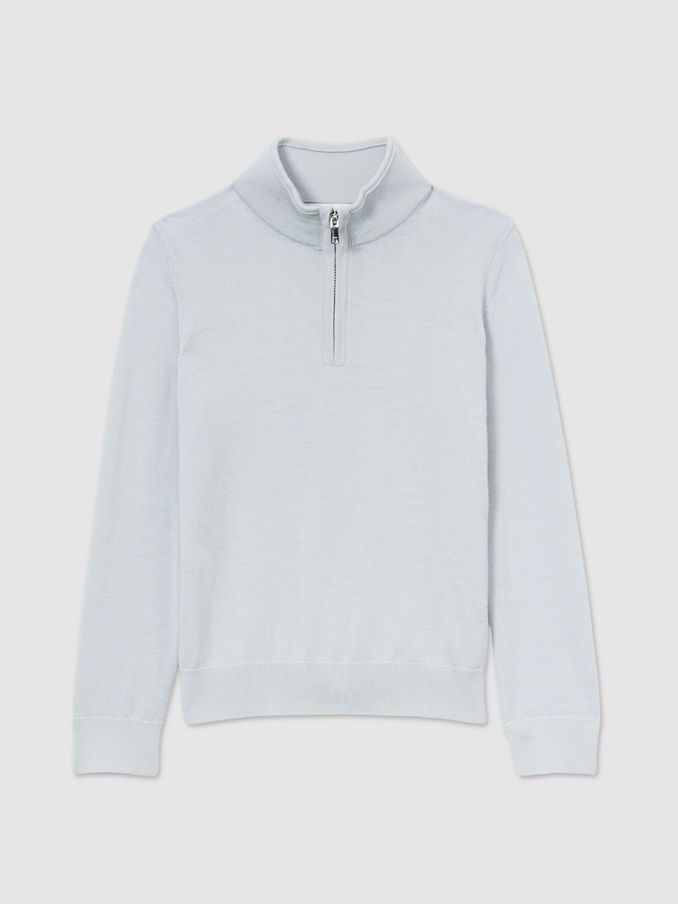 13-14 yrs Merino Wool Half-Zip Funnel Neck Jumper in Iced Blue