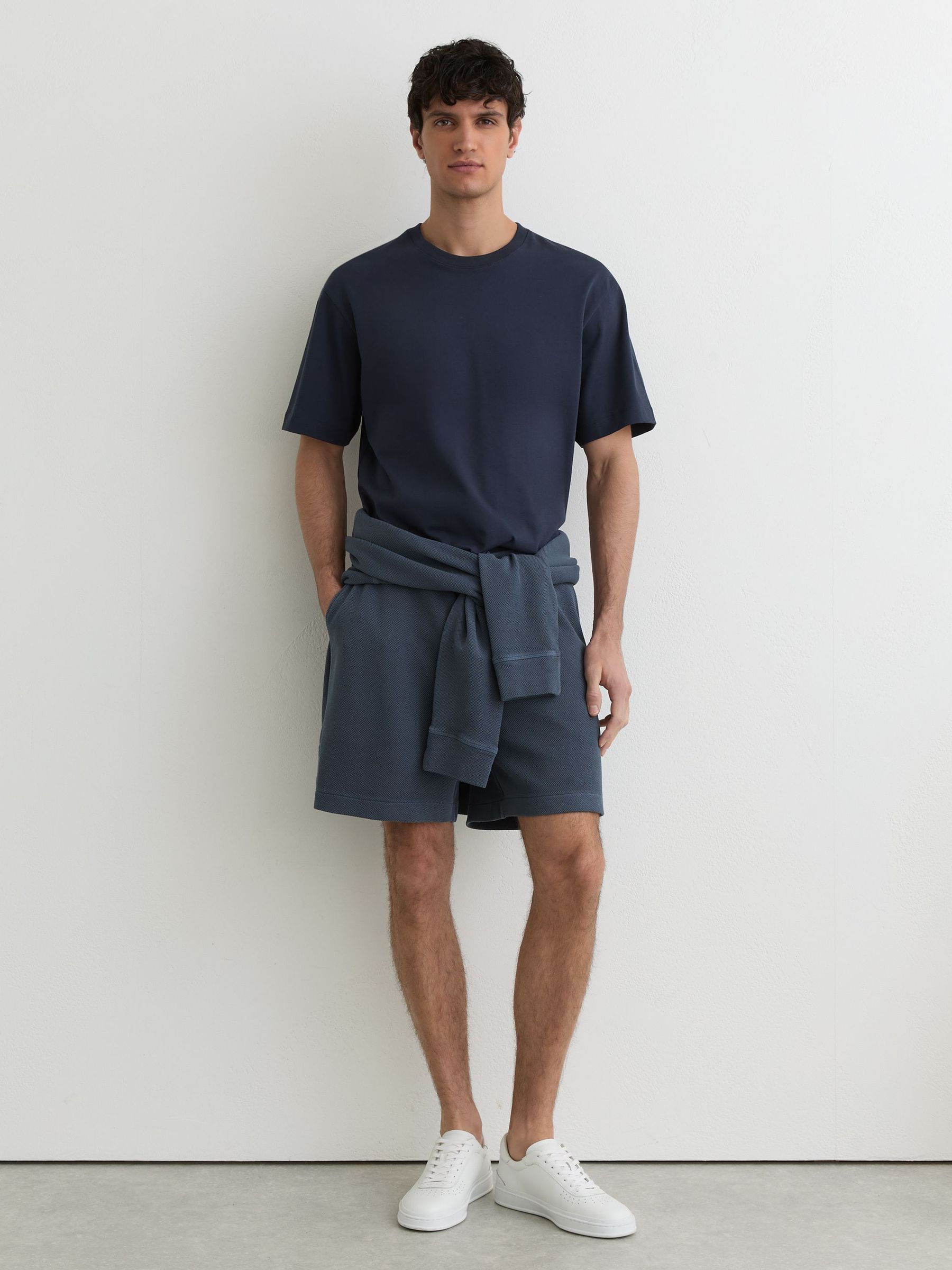 Jacquard Textured Drawstring Shorts in Soft Blue