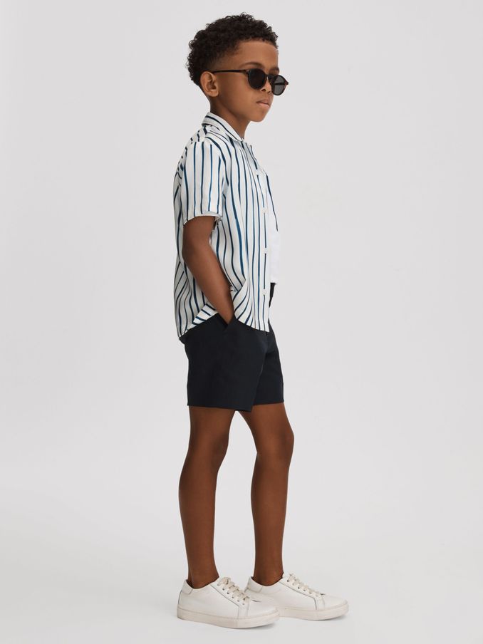 9-13 yrs Textured Stripe Cuban-Collar Shirt in Stone/White