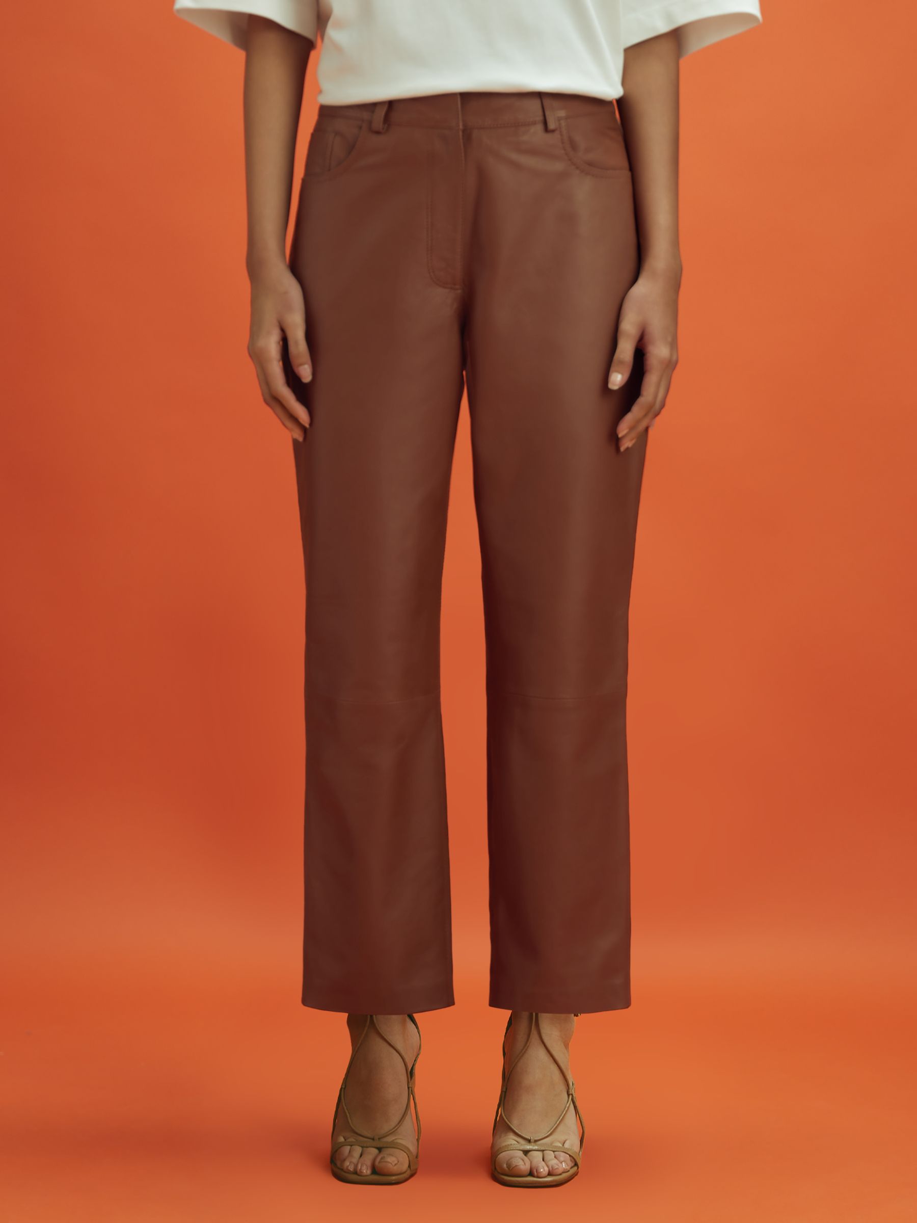 McLaren F1 Cropped Leather Trousers in Tan