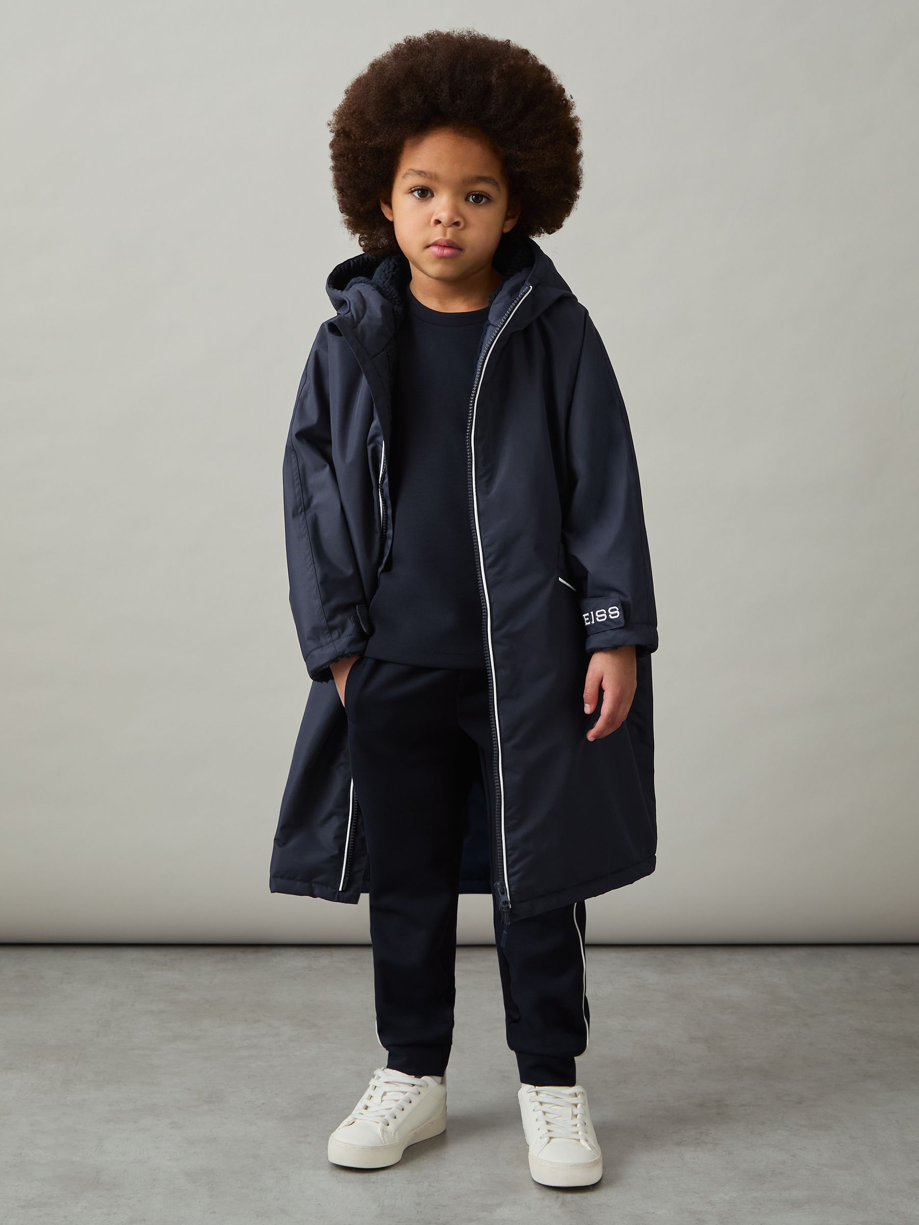 3-6 yrs Water-Repellent Fleece-Lined Coat in Navy/White