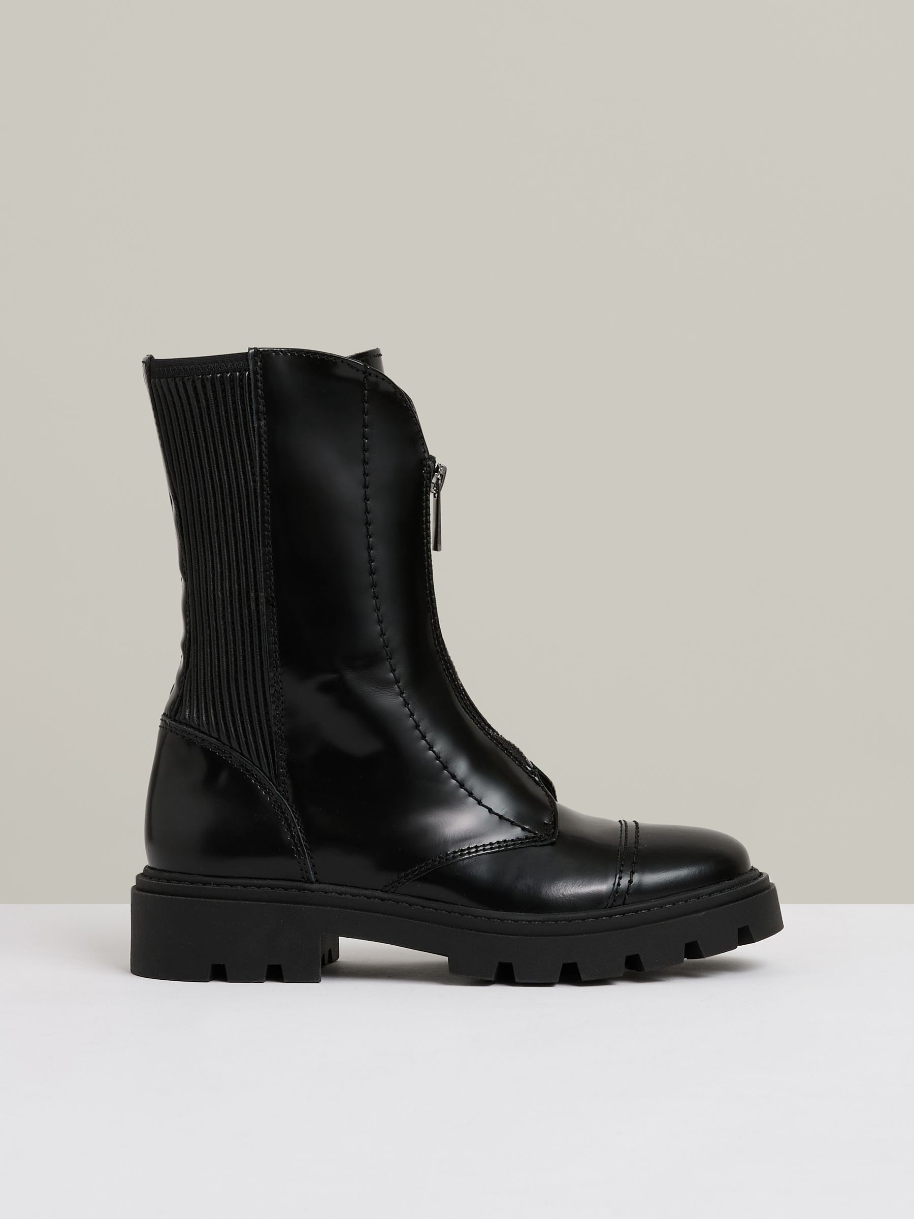 Leather Zip-Front Ankle Boots in Black