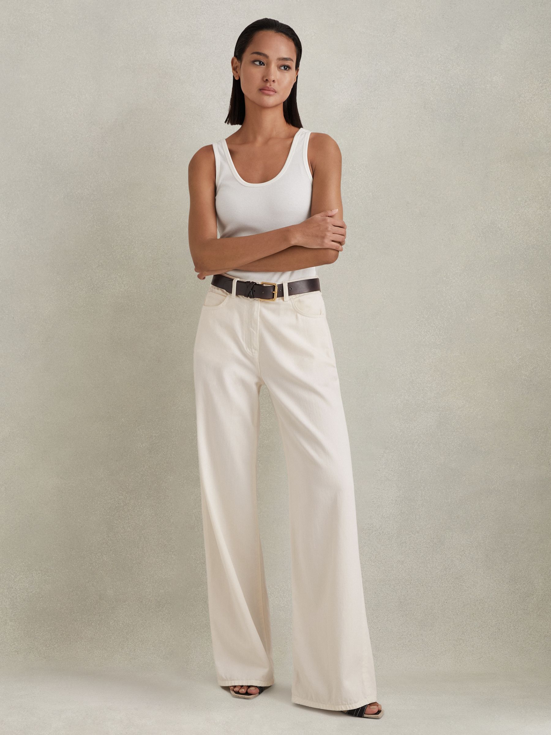 Petite Side-Stripe Wide-Leg Trousers in Cream