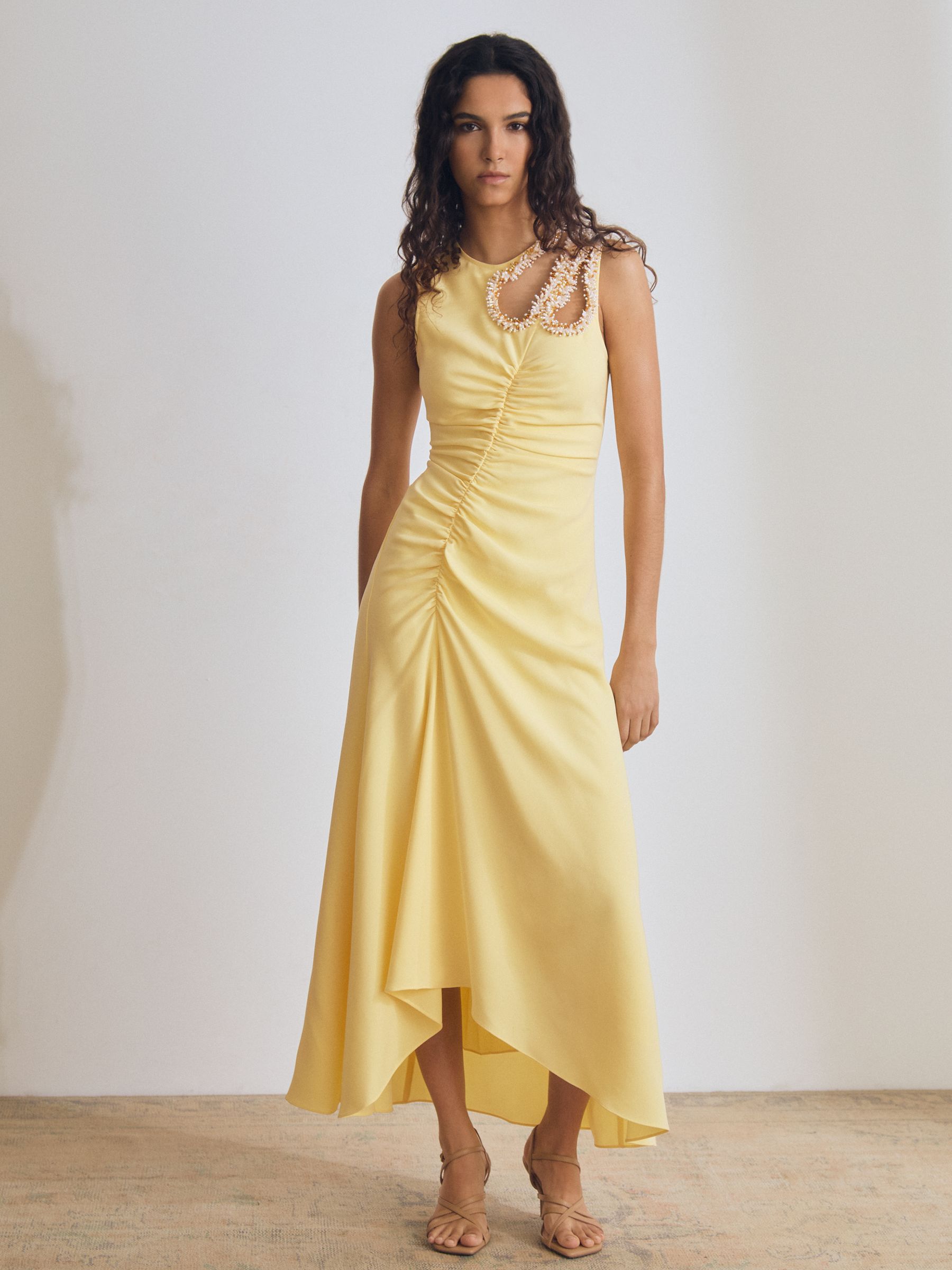 Atelier Embellished-Shoulder Maxi Dress in Yellow