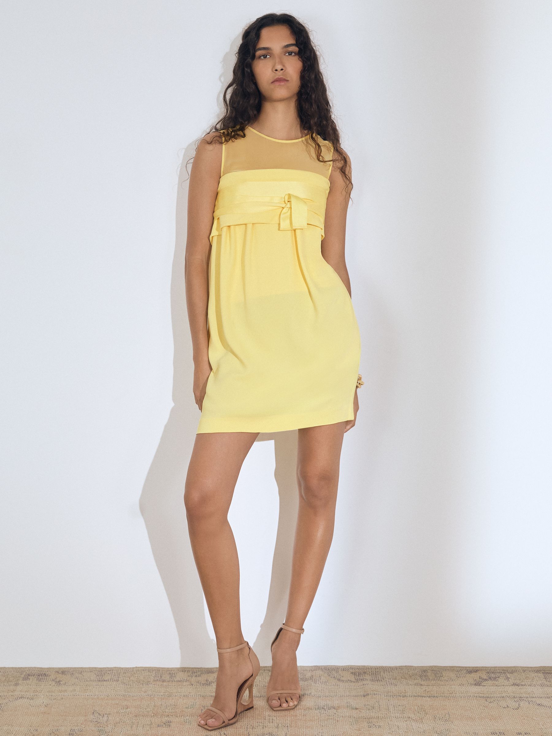 Atelier Ribbon-Tie Corset Shift Dress in Lemon