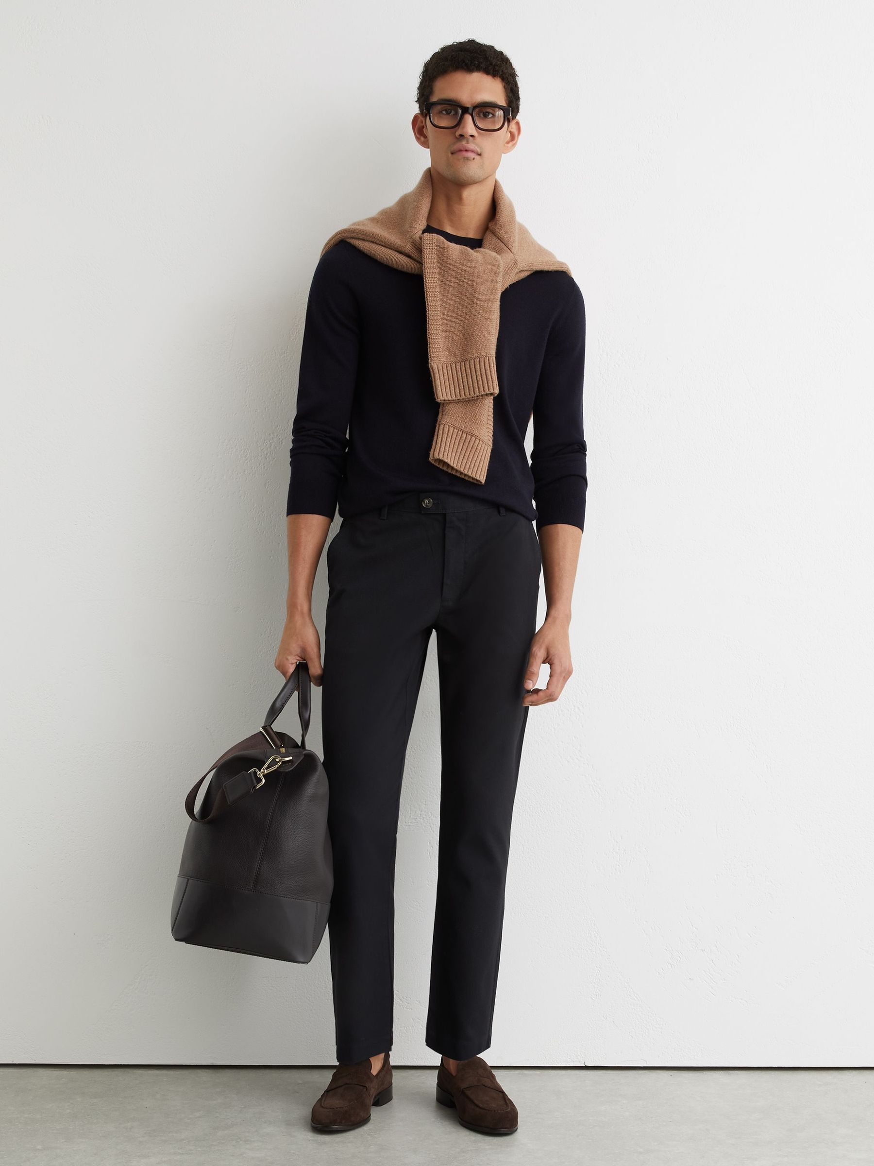 Cotton Pique Chino Trousers in Navy