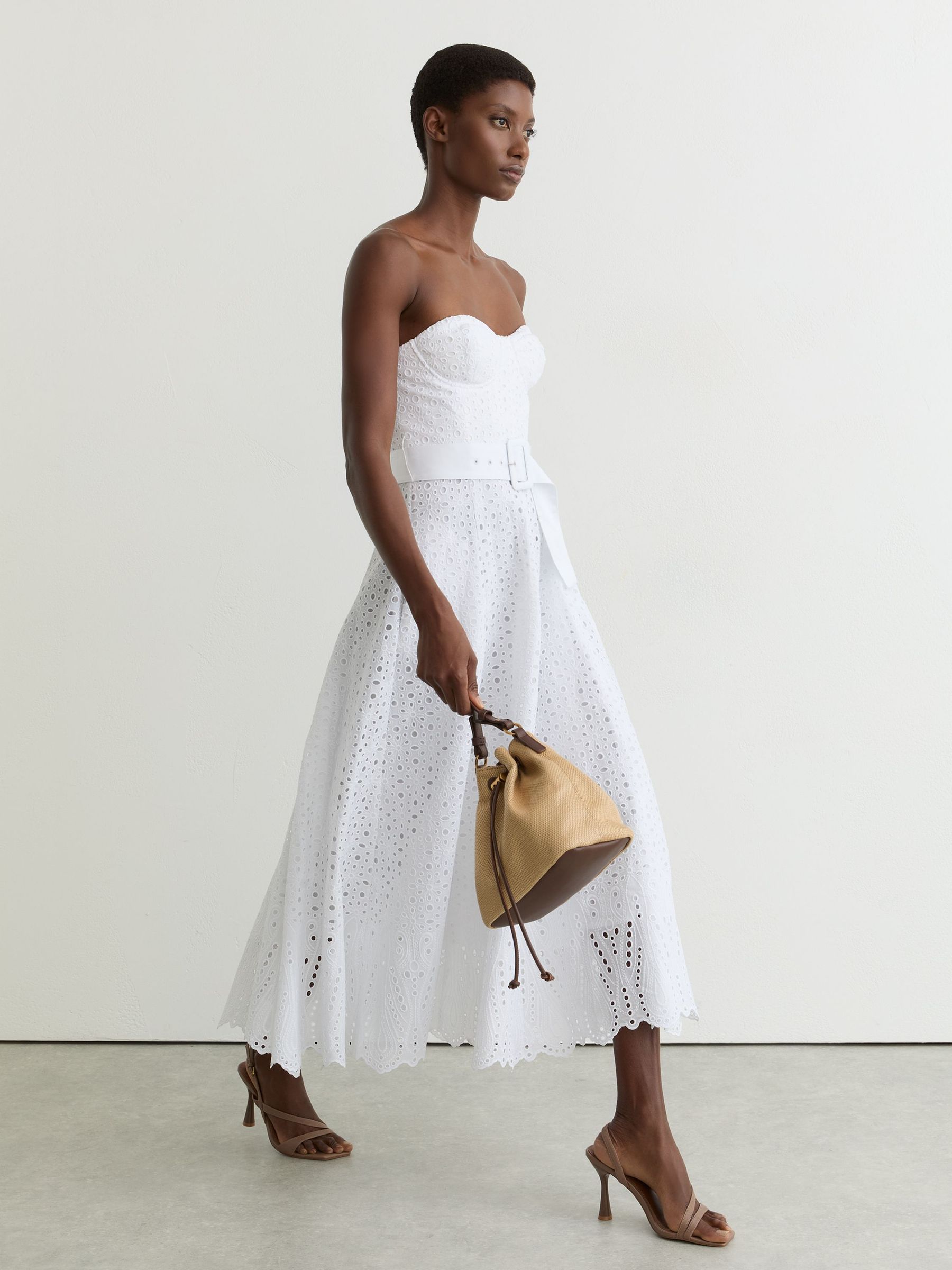 Waisted Cut-Out Twill Midi Dress in Ivory