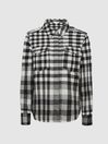 The Lou shirt, patterned in black and white checks, leans on preppy codes for the ageless button-down collar. It s neatly fitted with chest flap pockets accented with V-yokes, then the shoulders feature buttoned epaulettes. It s cut to a relaxed shape that leaves a space for layering underneath a roll-neck sweater, teamed with jeans and boots. Button-down collar. Epaulettes. Flap chest pockets. Button close. Buttoned cuffs. Check pattern. The model is wearing a size 8. Measurements of model: Height 5ft 9" / 175cm, Chest 32" / 81cm, Waist 23" / 58cm.