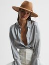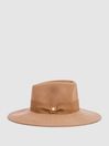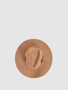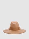 Crafted from soft, durable wool and detailed with a ribbon, the Claudia fedora in a classic camel shade is a sleek way to finish any outfit, whatever the season. Wear it with everything from a silk shirt and jeans to a printed day dress. 100% wool. Classic fedora shape. Wide brim. Ribbon detail.