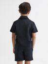 Curate a polished look with the navy Koen shirt. It’s cut with a Cuban collar and fitted with a buttoned closure, ideal for elevating his weekend wardrobe. A waffle-textured design adds understated appeal. Pair with tonal shorts to finish the look. Cuban collar Short sleeves Buttoned front closure Waffle-textured fabrication BCI (cotton)?? Reiss partners with Better Cotton to improve cotton farming globally. Better Cotton is sourced via a system of Mass Balance and is not physically traceable to end products.