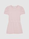 Smart casual styling calls for the pink Mimi dress. It’s crafted from a jersey fabrication and fitted with a crew neckline. Pleated sleeves add a feminine feel. Ribbed trims and an embroidered ‘Reiss’ motif complete the look. Crew neckline Pleated short sleeves Embroidered ‘Reiss’ motif to the chest Elasticated waistband Side slip pockets Ribbed trims The model is wearing a size 5-6 yrs Measurements of model: Height 4ft / 123cm