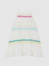 The Rae resort dress is crafted in a fluid shape that s ideal for holiday plans. Coloured embroidery adds a hint of fun. This design features thin shoulder straps and pleat detailing. Style it with sandals when on vacation. Square neckline. Thin shoulder straps. Pleat detailing. Coloured embroidery. Smock style. Above-knee length.