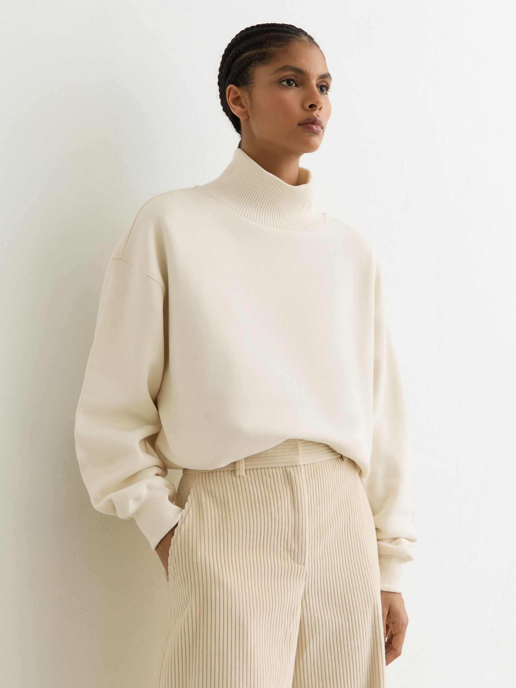 Cotton Funnel-Neck Sweatshirt in Cream