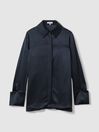6.12.1 Silk Double-Cuff Button-Through Shirt in Navy - REISS Click here to use our website with more accessibility support, for example screen readers