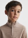 6.12.1 9-12 yrs Merino Wool Zip-Neck Jumper in Wheat Melange - REISS Click here to use our website with more accessibility support, for example screen readers
