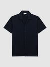 6.12.1 Mercerised 100% Cotton Jersey Cuban Collar Shirt in Navy - REISS Click here to use our website with more accessibility support, for example screen readers