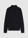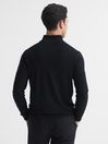 6.12.1 Merino Wool Half-Zip Funnel Neck Jumper in Black - REISS Click here to use our website with more accessibility support, for example screen readers