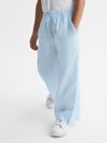 6.12.1 4-9 yrs Linen Drawstring Trousers in Ice Blue - REISS Click here to use our website with more accessibility support, for example screen readers