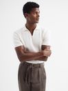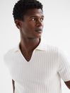 6.12.1 Zip Front Striped Polo Shirt in Ecru - REISS Click here to use our website with more accessibility support, for example screen readers