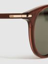 6.12.1 Paige Round Acetate Frame Sunglasses in Brown - REISS Click here to use our website with more accessibility support, for example screen readers