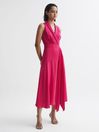6.12.1 Pleated Fitted Midi Dress in Pink - REISS Click here to use our website with more accessibility support, for example screen readers