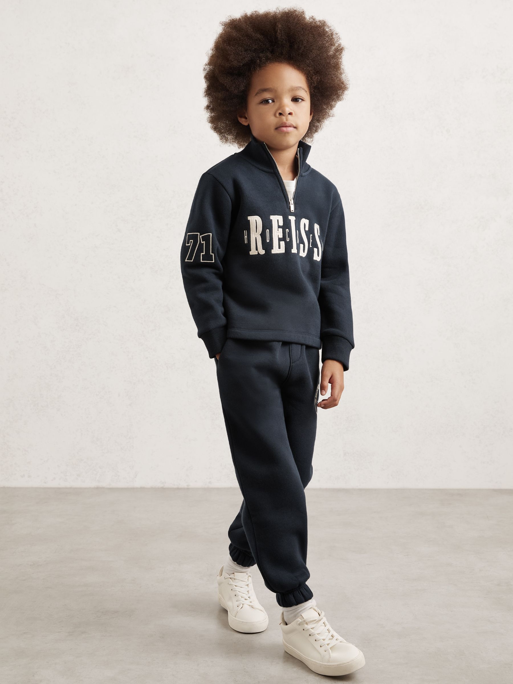 9-13 yrs Cotton-Blend Half-Zip Embroidered Sweatshirt in Navy