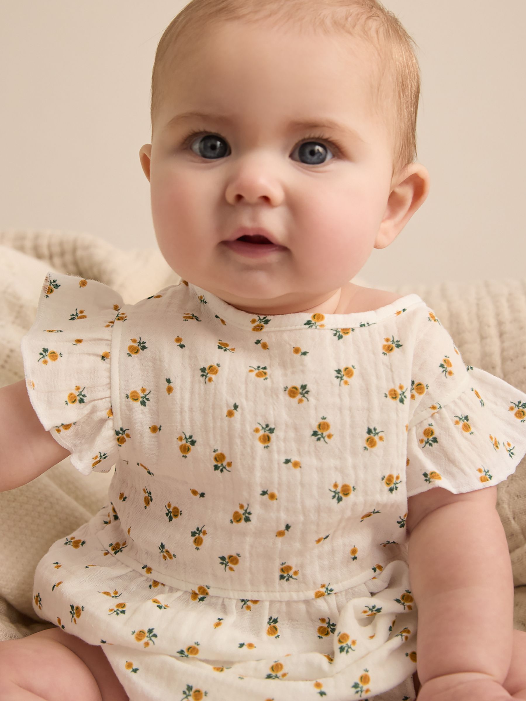 Cotton Seersucker Floral Print Romper in Ivory Print