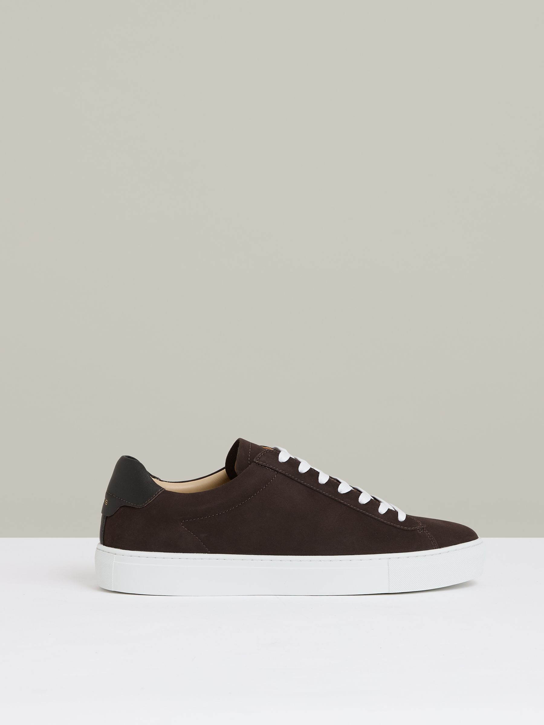 Nubuck-Leather Low-Top Trainers in Dark Chocolate Brown