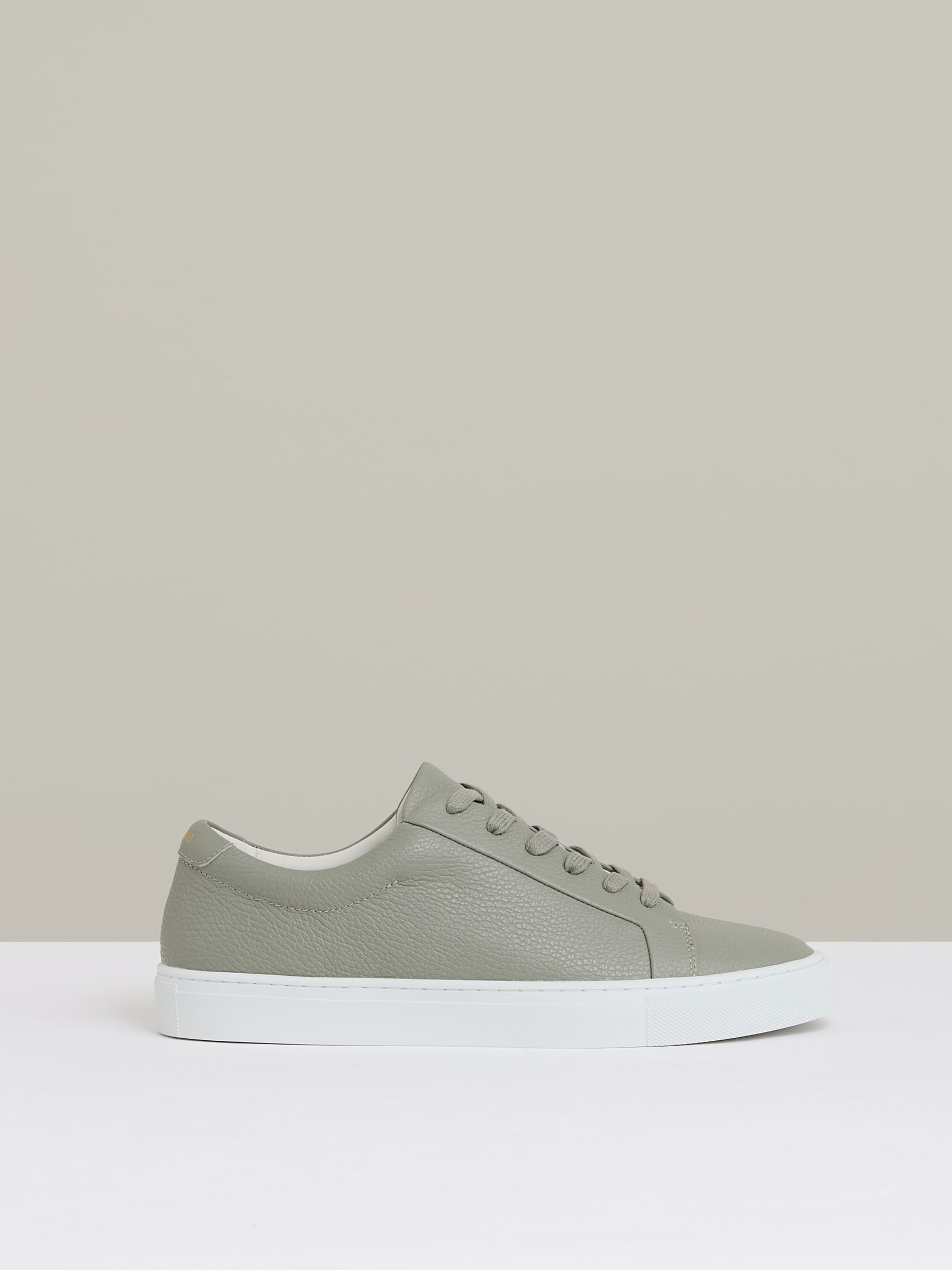 Tumbled-Leather Low-Top Trainers in Mint Green