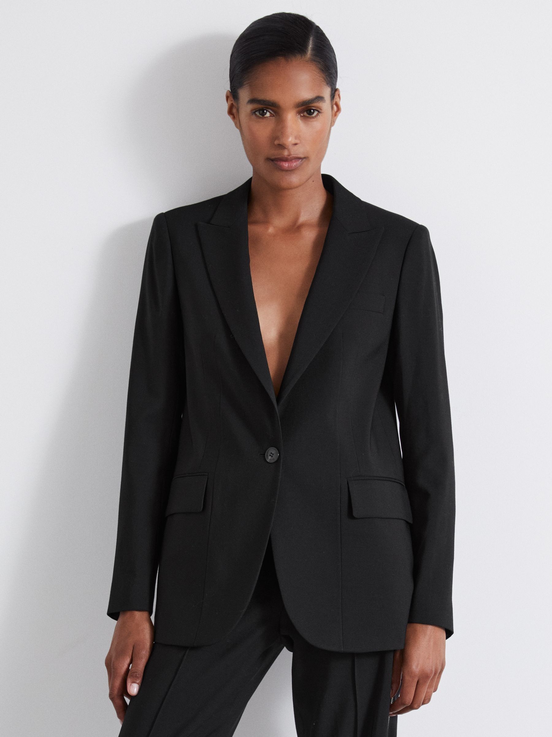 Petite Single Breasted Suit Blazer in Black