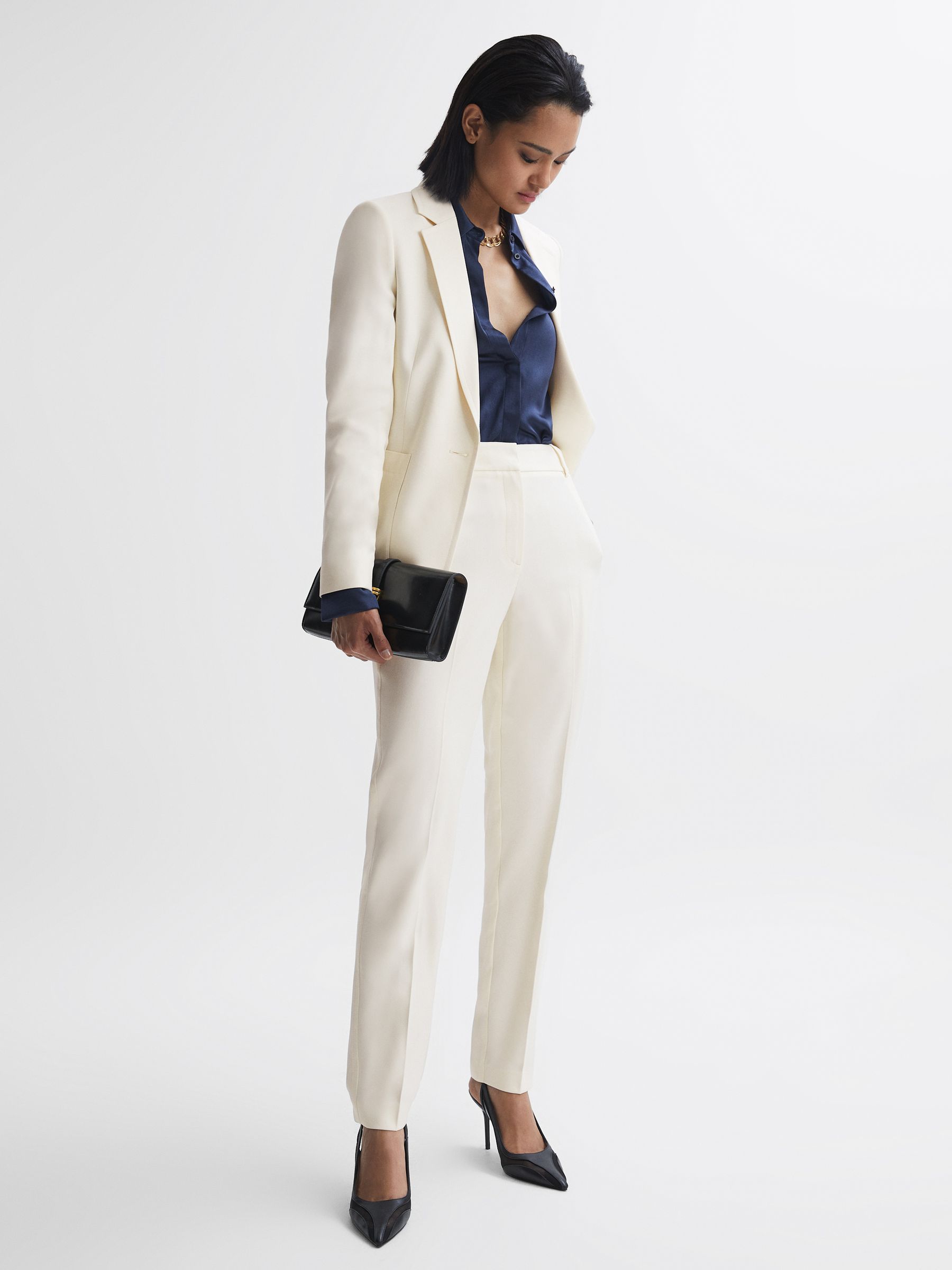 Slim Fit High Rise Trousers in Cream