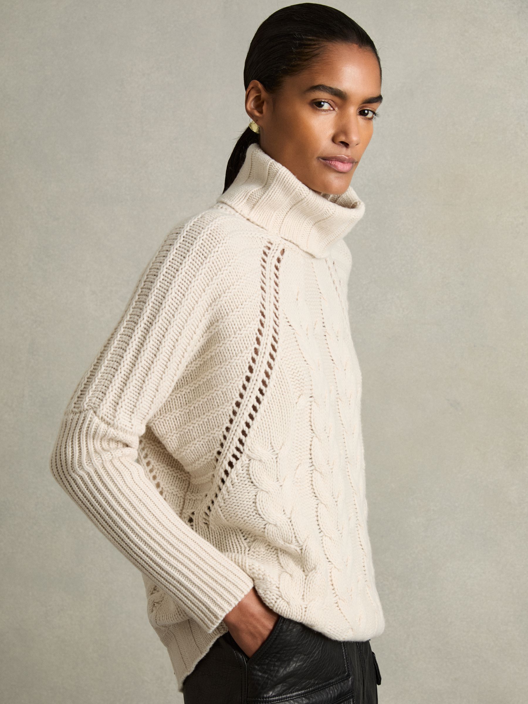 Wool-Cashmere Roll-Neck Jumper in Cream