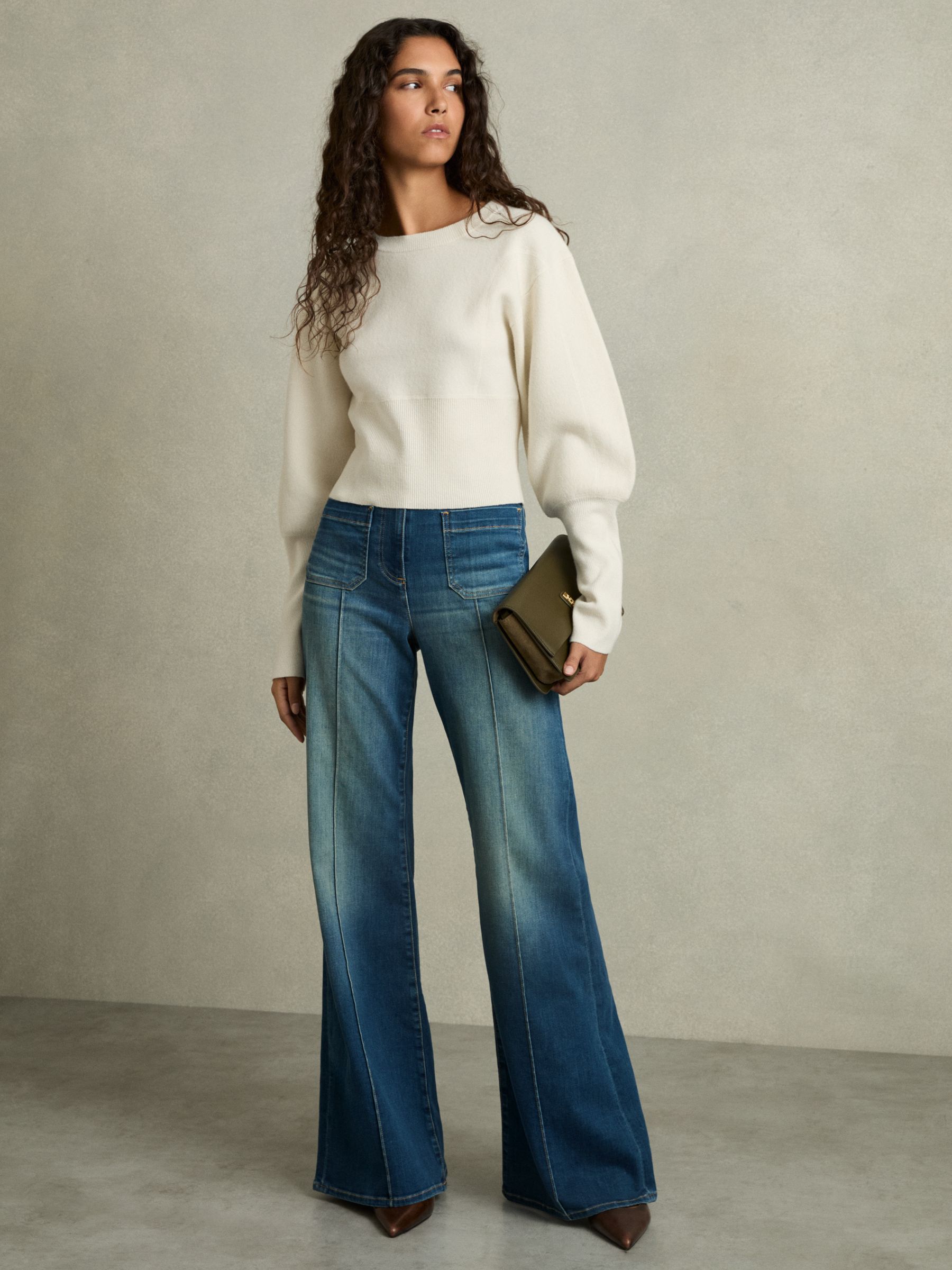 Wool-Blend Balloon-Sleeve Cropped Jumper in Cream