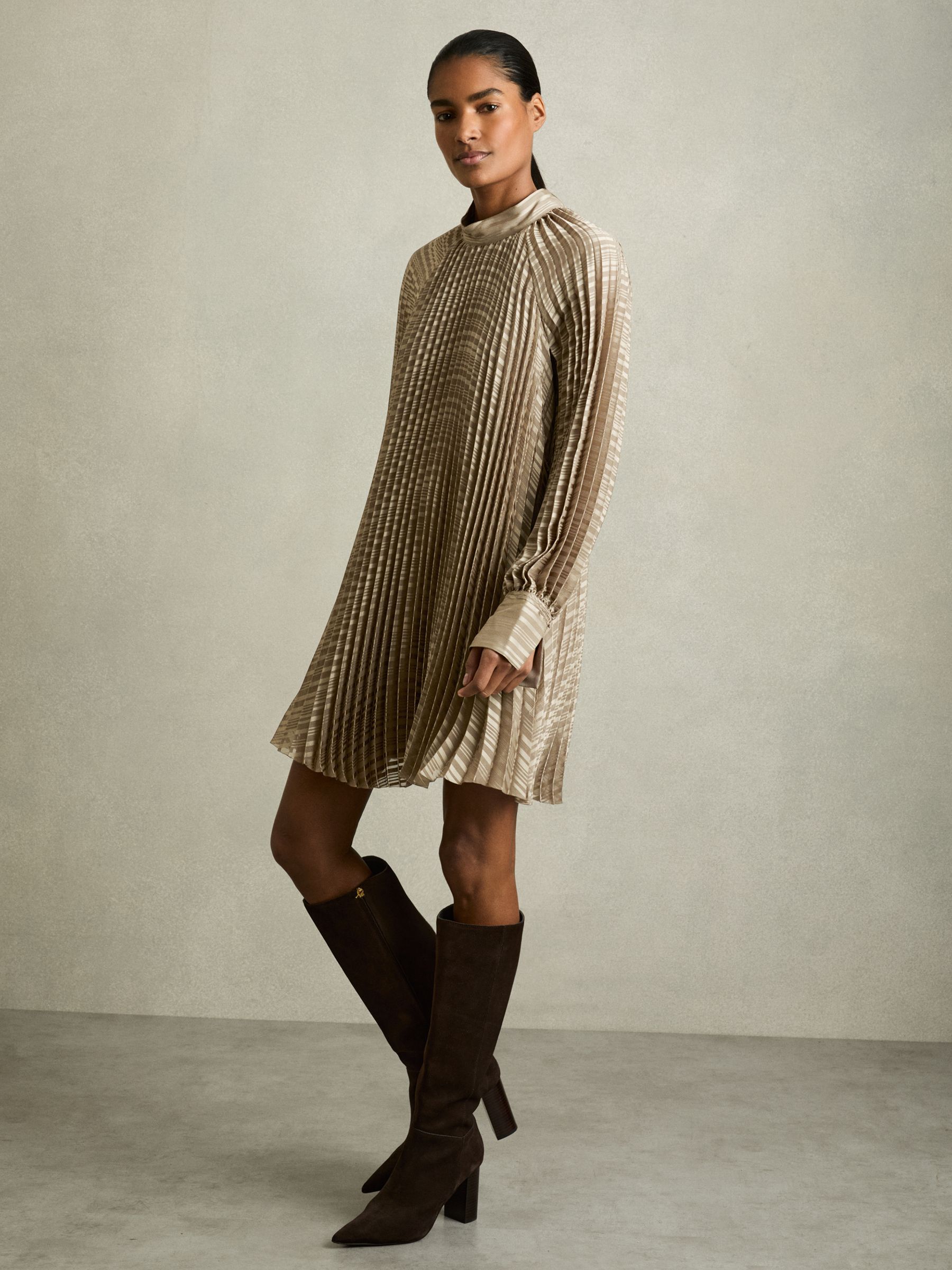 Pleated Belted Mini Dress in Sage