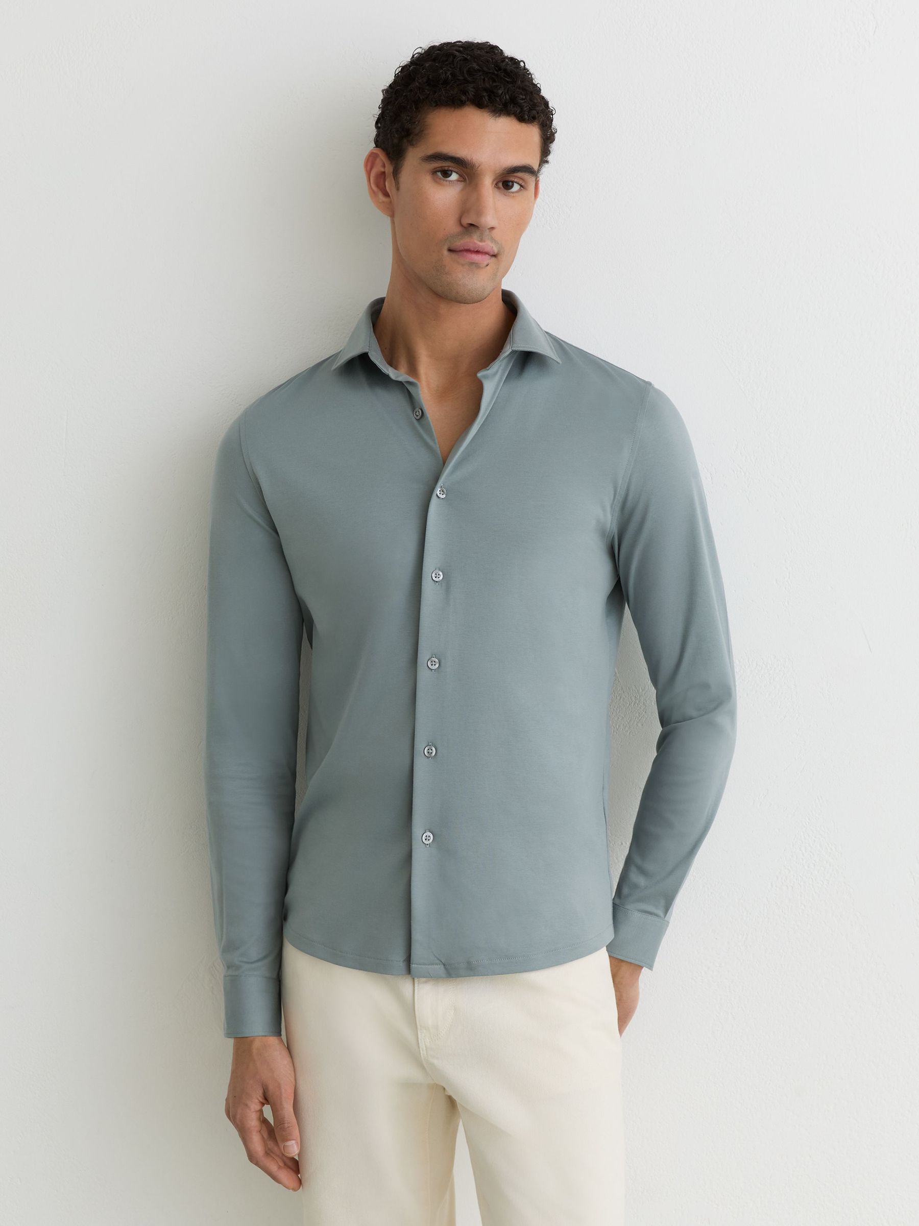 Air-Water Cotton Slim-Fit Shirt in Steel Blue
