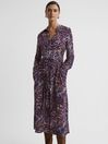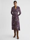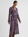 7.2.6 Petite Animal Print Midi Dress in Blue | REISS Hong Kong Click here to use our website with more accessibility support, for example screen readers