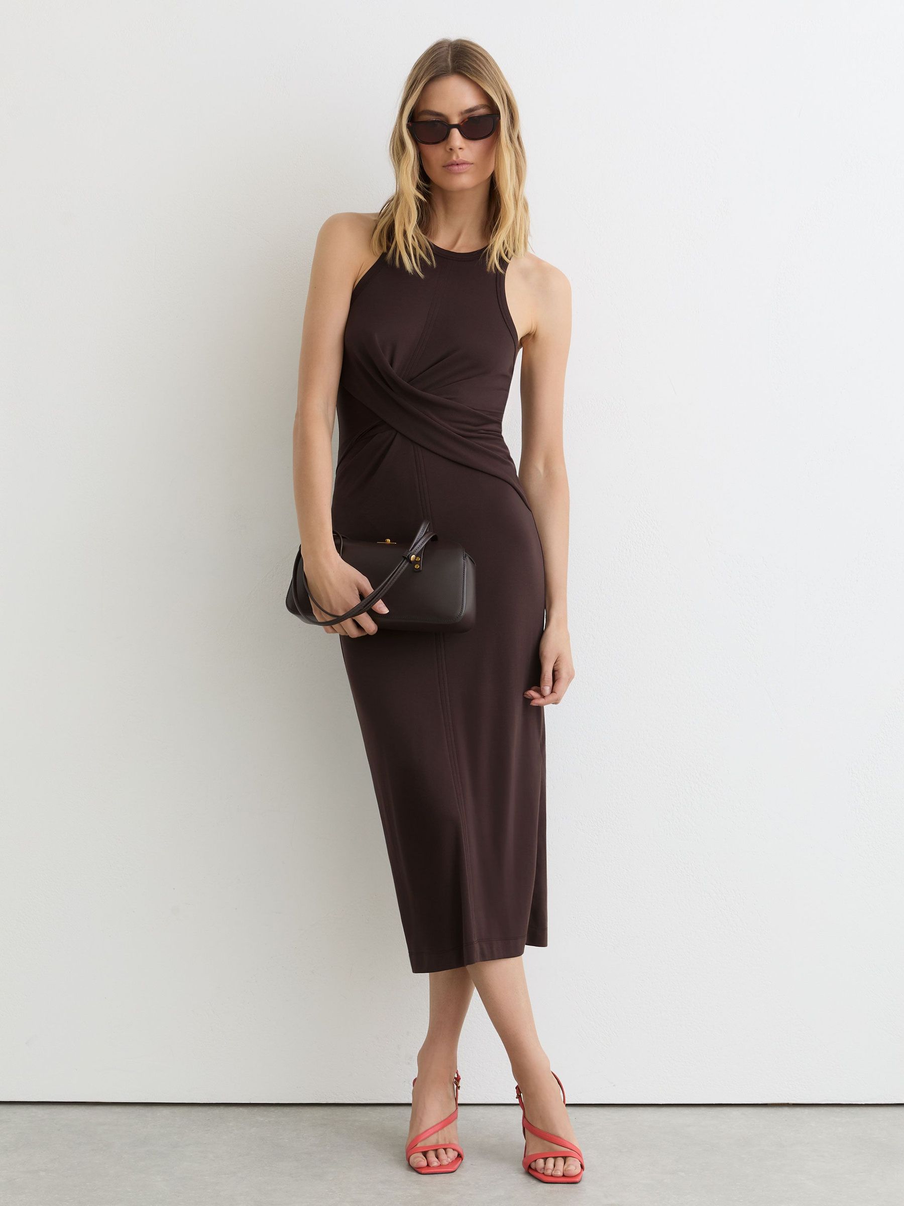 Twist-Front Sleeveless Jersey Dress in Grape