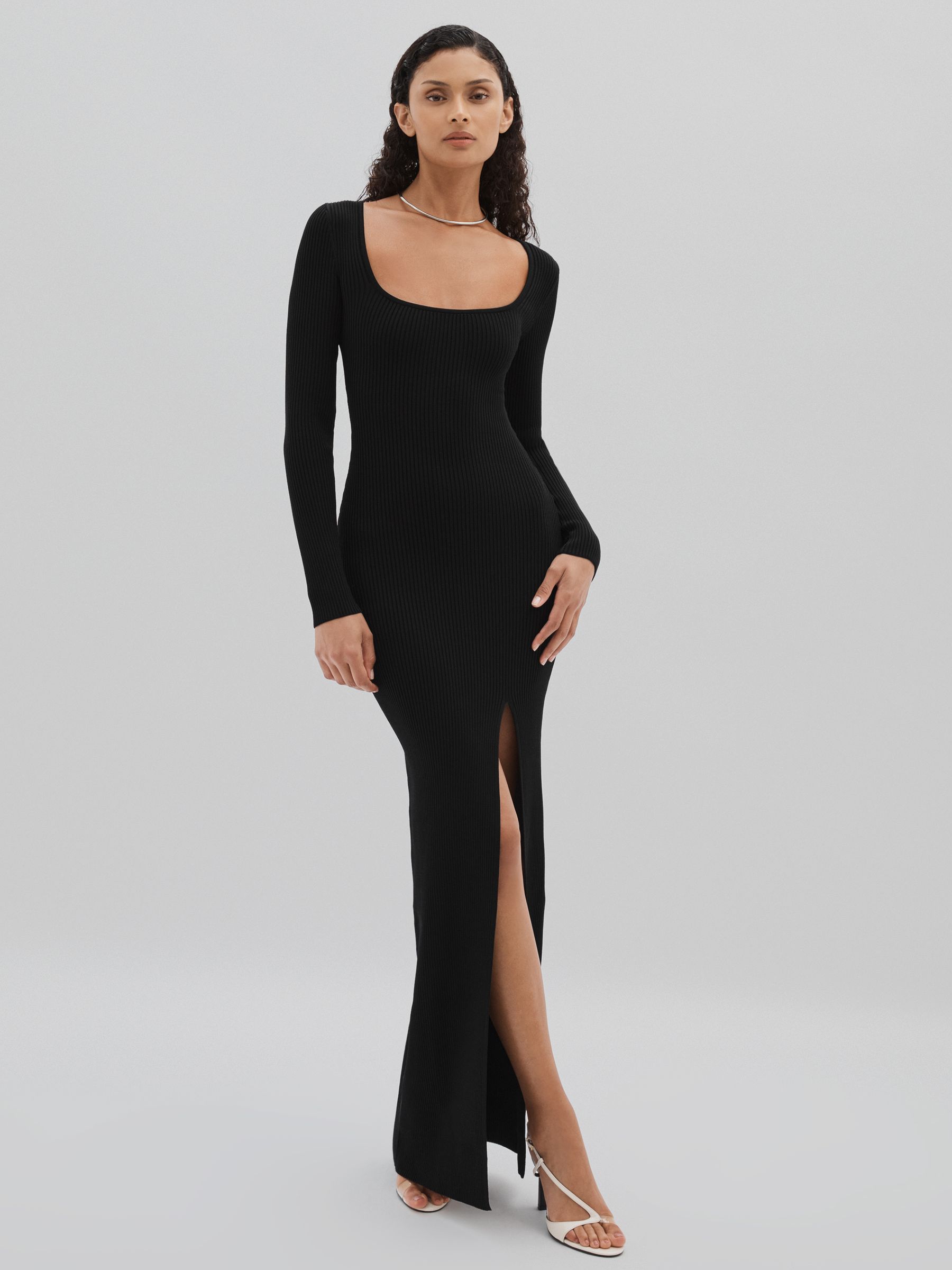 Good American Ribbed Midi Dress in Black