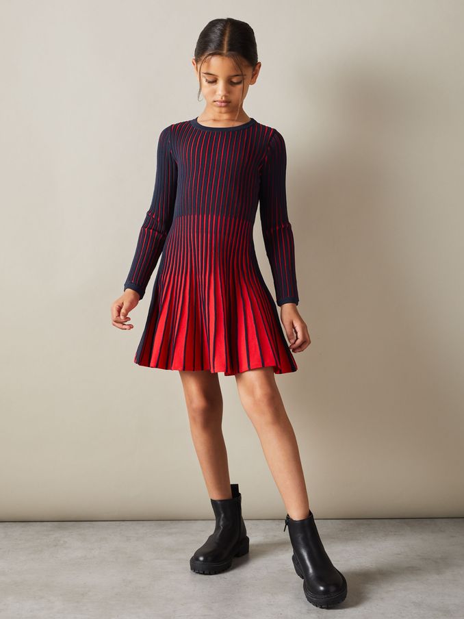 9-13 yrs Contrast-Trim Rib-Knit Dress in Navy
