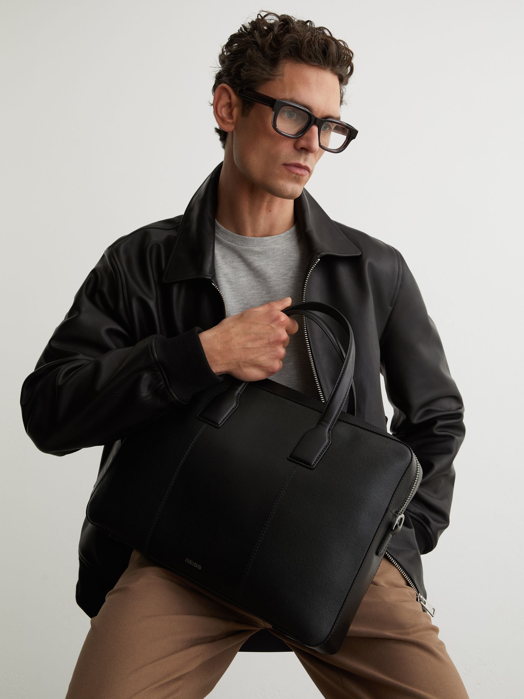 Micro-Grain Leather Holdall in Black