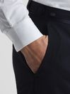 Leave a lasting impression at your next black-tie event with the Poker tuxedo trousers. Liquid repellent and crease-resistant to maintain form, they are tailored to a modern fit and feature contrasting satin trim to the waistband. Wear with the matching dinner jacket and a bow tie for sartorial perfection. Bi-Stretch. High Durability. Spillage and water-resistant. Crease-resistant. Satin trim. Plain front. Slash pocket to each hip. Side adjusters. Jetted pockets to reverse. Zip fly. The model is wearing a size 32 Measurements of model: 6ft 2" / 188cm.