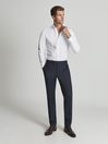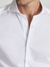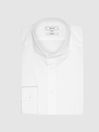 Crafted from 100% cotton, the premium two-fold twill construction gives the Storm shirt a modern-luxury feel. The REISS true cutaway collar gives this shirt an Italian inspired look and allows for versatile wearability where it looks sharp both unbuttoned or dressed up with a traditional tie for an elegant look perfect for any formal occasion. Two-fold twill cotton fabrication. Cutaway collar. Full-buttoned front placket. Long sleeves. Chiseled sleeve cuffs. Slim fit. Darting to the reverse. The model is wearing a size M. Measurements of model: Height 6ft 3" / 191cm, Chest 40" / 102cm, Waist 28" / 71cm.