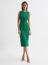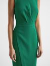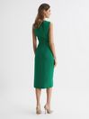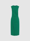 The green Layla dress comes in an sleeveless mid-length cut to a slender fit through the body with a crew neckline. Subtle gathering across the waist and a wrap design complete with leg slit on the skirt give this classic piece a contemporary update. For an elevated take on occasionwear, style this item with sandal heels and a cross body bag. Sleeveless Slim fit Midi-length Ruching detail Leg slit Zip and hook closure to reverse The model is wearing a size 8 Measurements of model: Height 5ft 10" / 178cm