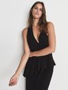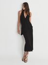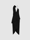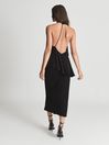 The Xena midi dress is designed with asymmetric shoulder straps and a striking open-back. Peplum detailing and a front split complete an Athenian-inspired look. Wear it with barely-there sandals and a smattering of fine jewellery for a contemporary take on event dressing. Fine jersey fabrication. One wide shoulder strap. One spaghetti strap. Bodycon silhouette. Peplum detailing. Midi-length. Front split. The model is wearing a size 8. Measurements of model: Height 5ft 9.5" / 177cm, Chest 33" / 83cm, Waist 24" / 61cm.