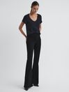 Teaming a seventies silhouette with its desire for denim, the Beau jeans in black are crafted with the modern woman in mind. Sitting high on the waist they skim over the thighs and fall into a wide flared leg, great for lengthening the silhouette. Team with a T-shirt, trainers and a blazer for a chic weekend look. High-rise. Zip fly. Five-pocket design. Tonal stitching. Flared silhouette. Also available in a petite fit. Inside leg measurement: 81cm (our petite style is 78cm). The model is wearing a size 26. Measurements of model: Height 5ft 10 1/2 " / 179cm, Chest 32" / 82cm, Waist 23" / 58cm.