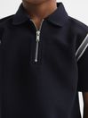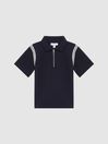 A classic polo silhouette gets a fresh update with the navy Monarch shirt. It’s fitted with a half-zip neckline and stripe detailing is added for an understated style. Pair with the coordinating shorts for a refined look with a sportive edge. Half-zip polo neckline Short sleeves Stripe detailing The model is wearing a size 5-6 yrs Measurements of model: Height 3ft 9" / 121cm