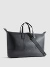Travel in style with the Carter holdall in black, crafted from 100% leather for a luxurious touch. It features grab handles and a removable shoulder strap for versatility. The grained finish lends a sophisticated note. Grained leather. Grab handles. Adjustable, removable shoulder strap. Internal compartments. Zip close. REISS branding.