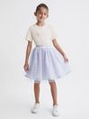 With an elasticated sparkle waistband and sequin skirt layer, the pale pink Charlotta skirt is a dazzling party-piece. It’s cut to sit at the knee, and its three-tiered construction offers full-bodied movement. Pair with a t-shirt and pumps for a head-turning look this party season. Elasticated. Sparkle waistband. Midi-length. Sequin skirt. Lined. Casual fit. The model is wearing a size 5-6 yrs.